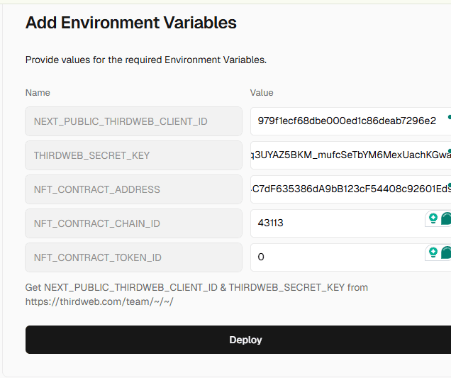 • NEXT_PUBLIC_THIRDWEB_CLIENT_ID: Your thirdweb Client ID